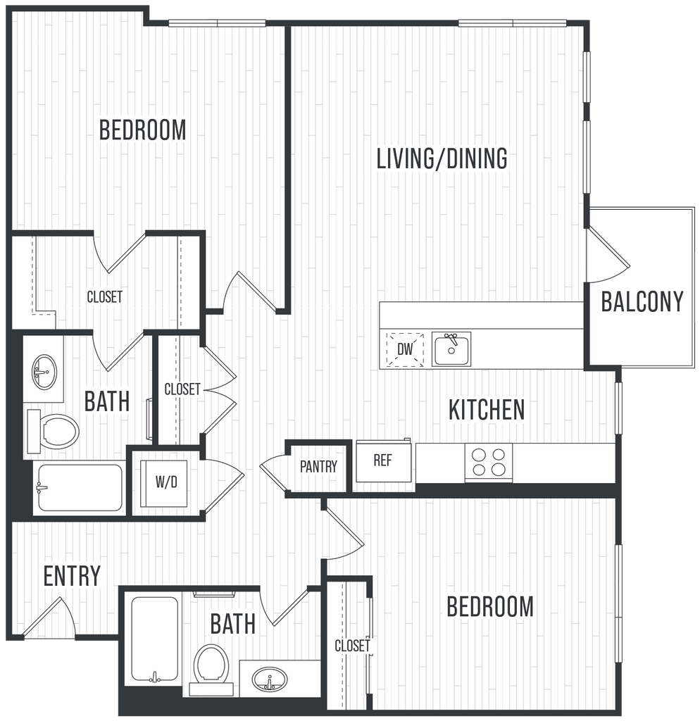 1 Dormitorio, 1 Baño, 786 pies²Disponible AhoraGalería del Modelo