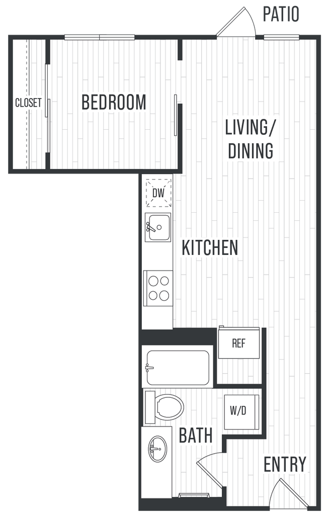 1 Dormitorio, 1 Baño, 518-548 pies²Disponible AhoraEl más baratoEsta opción tiene los precios más bajos para este modeloGalería del Modelo