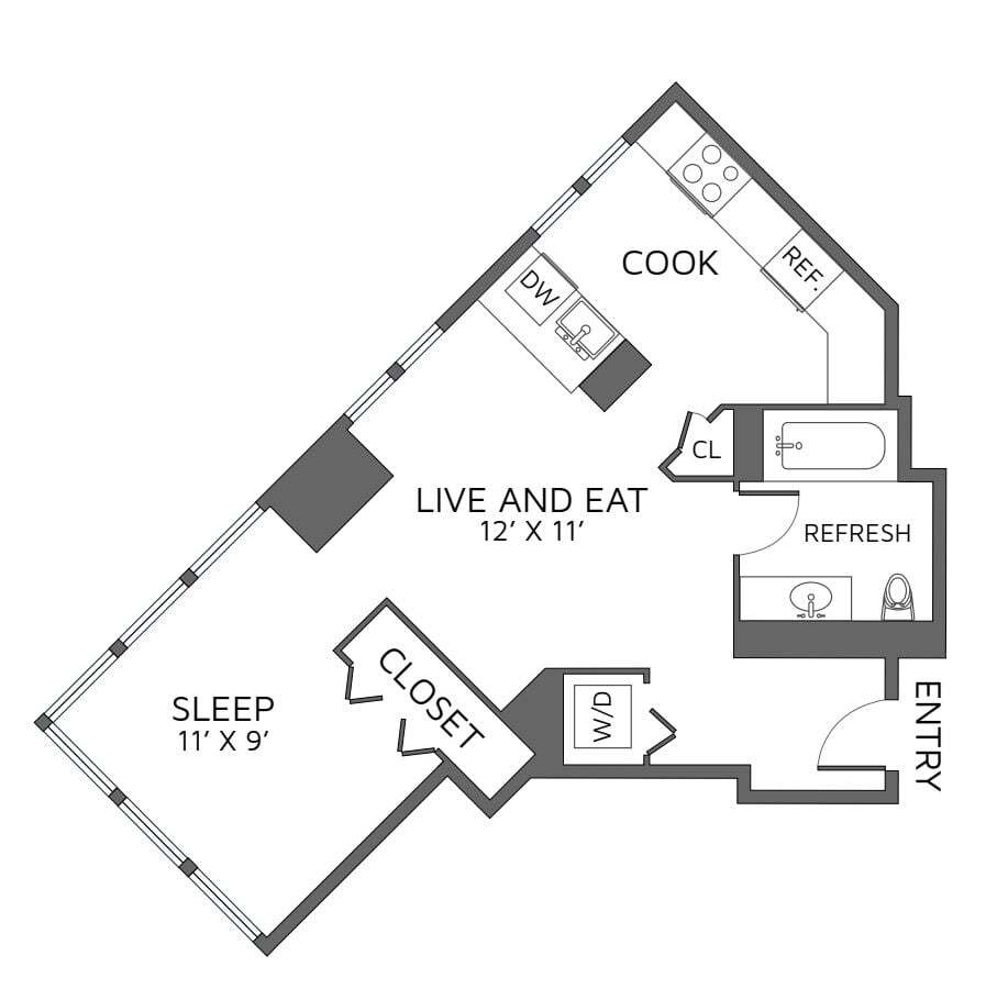 Estudio, 1 Baño, 559 pies²Disponible AhoraGalería del Modelo