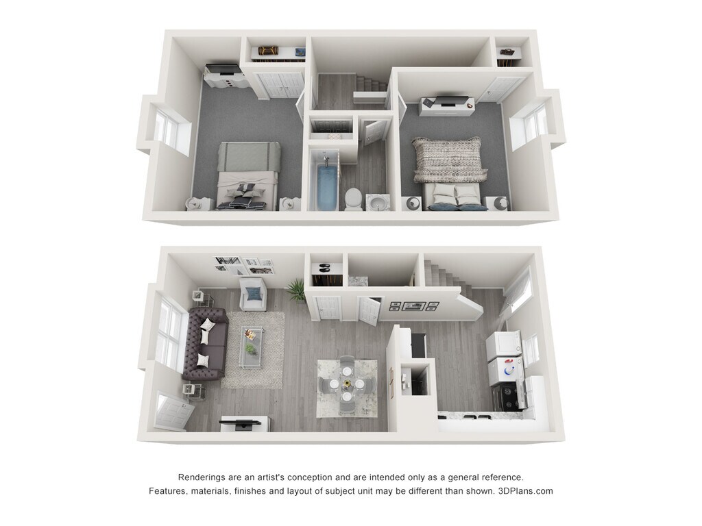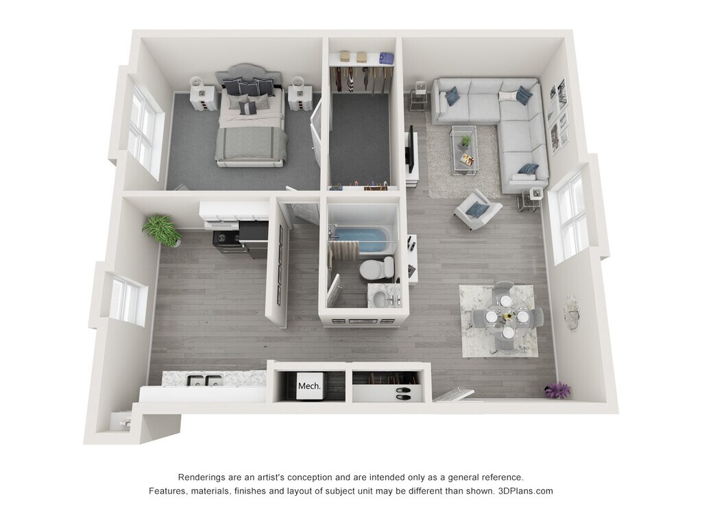 1 Dormitorio, 1 Baño, 800 pies²Disponible AhoraGalería del Modelo