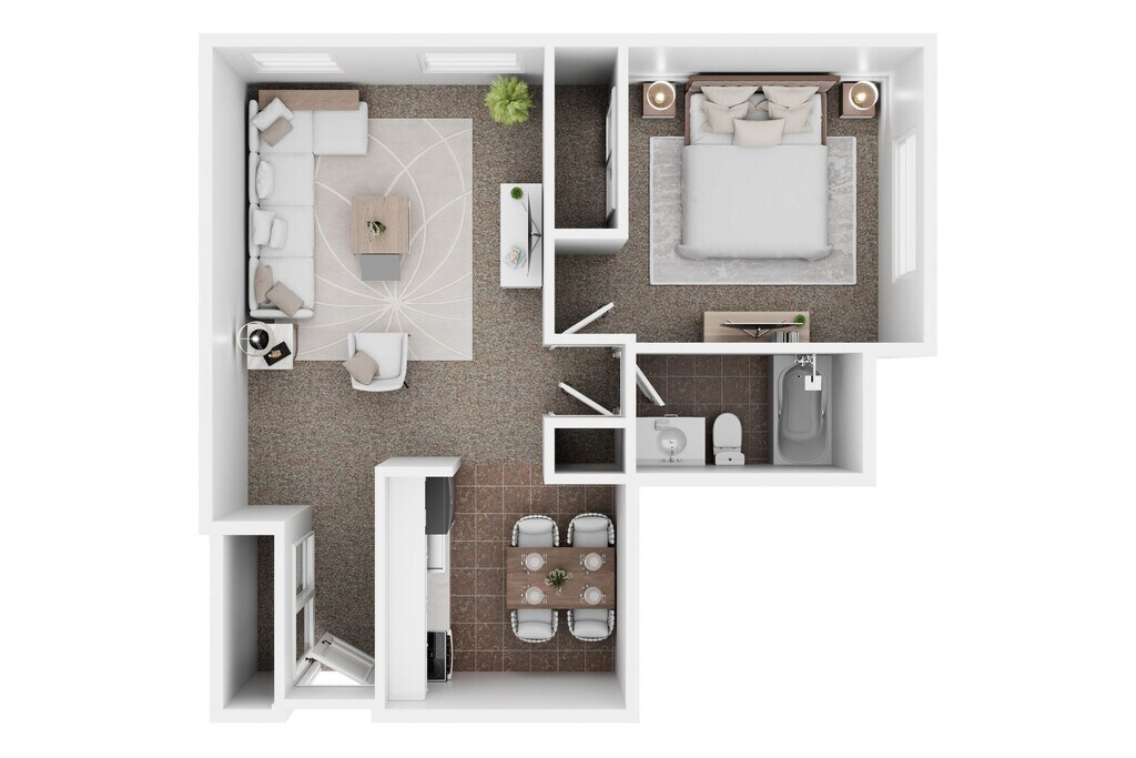 Modelo de apartamento: A2 ClassicDesde $7601 Dormitorio, 1 Baño, 700 sq ftDisponible AhoraPlanosFotos![]()
