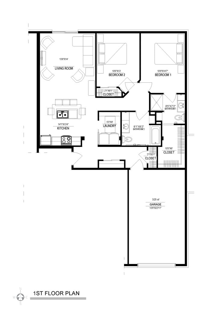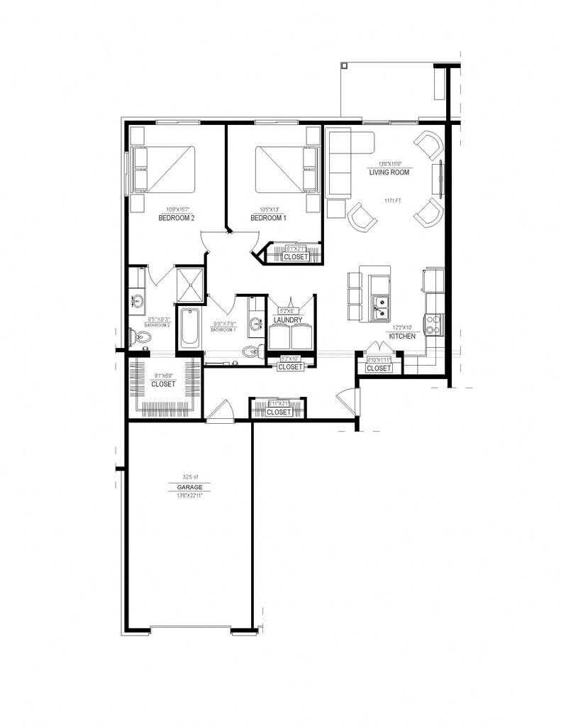 2 Bed/2 Bath, Detached Garage (2/2d) - Plano 1 ![]()