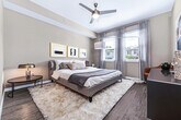 - Dual vanities and framed mirrors in bathrooms