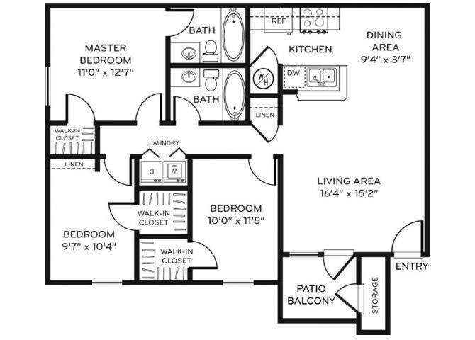 Modelo de apartamento: A1Desde $1,3111 Dormitorio, 1 Baño, 595 sq ftDisponible Ahora![]()