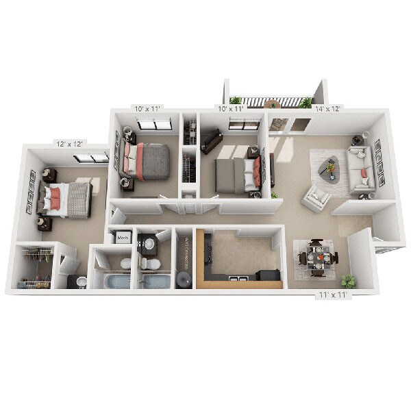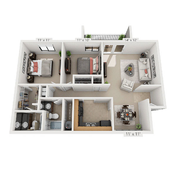 Modelo de apartamento: Plan B2Llame para Precios2 Dormitorios, 2 Baños, 1031 sq ftNo Disponible![]()