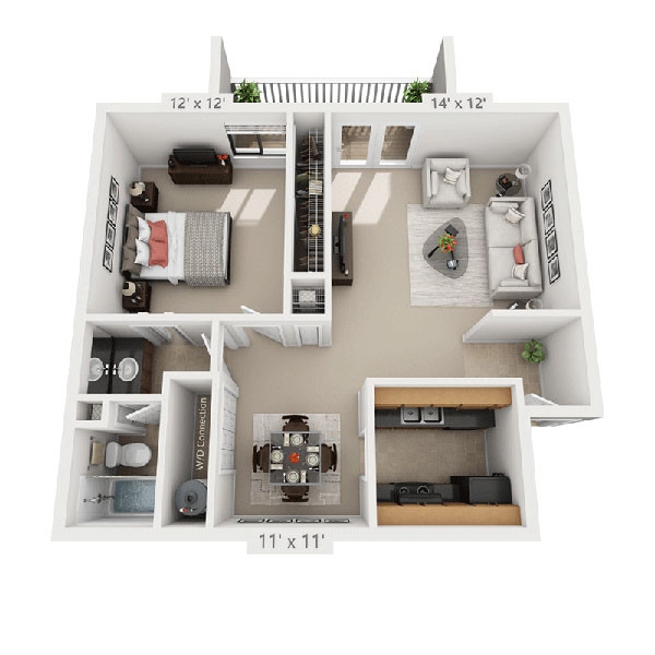 1 Dormitorio, 1 Baño, 761 pies²Disponible AhoraGalería del Modelo