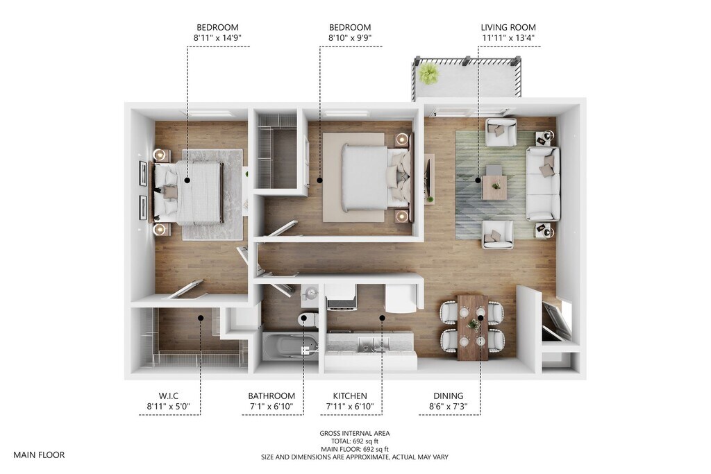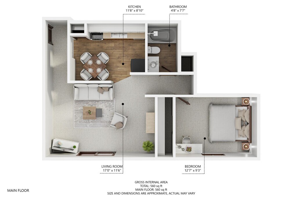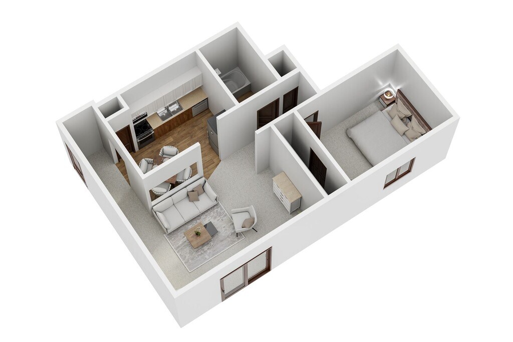 1 Dormitorio, 1 Baño, 700 pies²Disponible AhoraGalería del Modelo