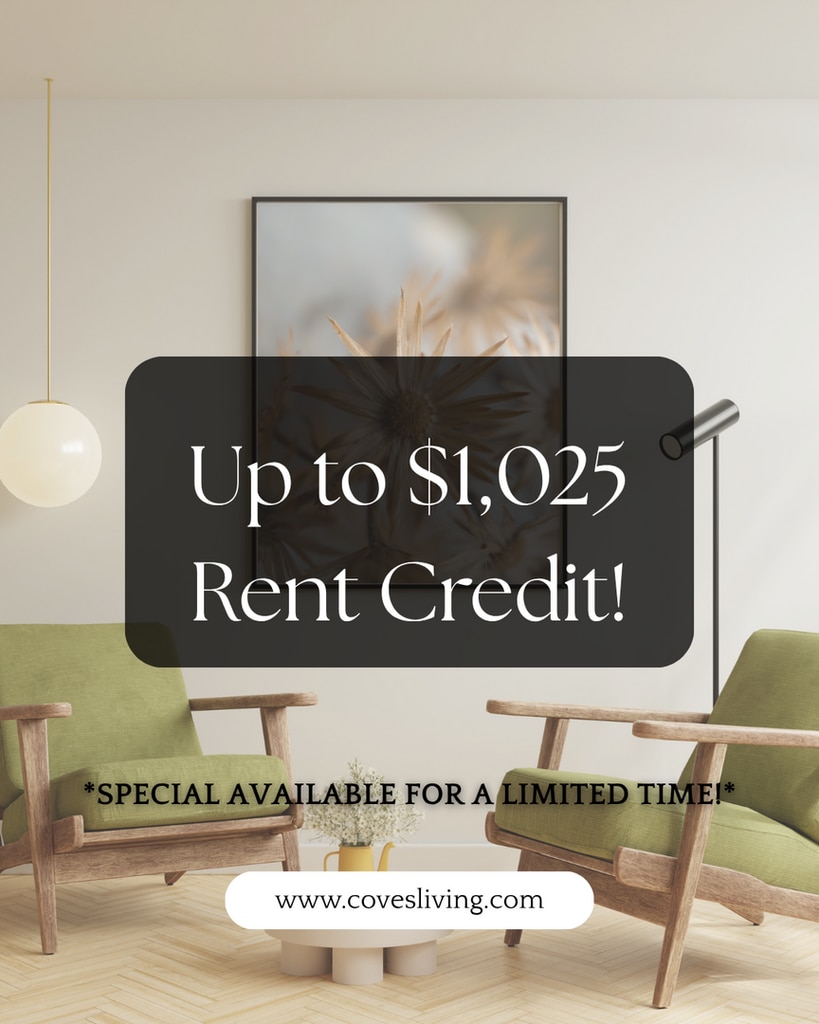 Up to $1,025 rent credit.~~Sign a 12 month lease and receive up to a $1,025 rent credit for a limited time. Specials are subject to change.