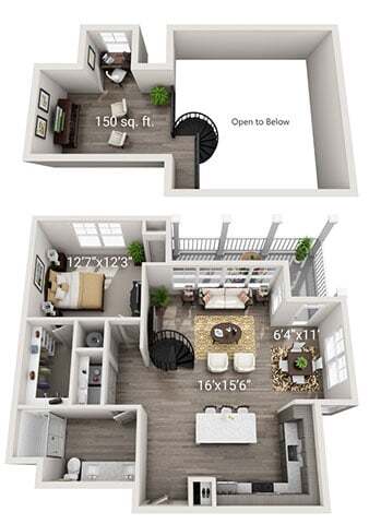 1 Dormitorio, 1 Baño, 762 pies²Disponible AhoraGalería del Modelo