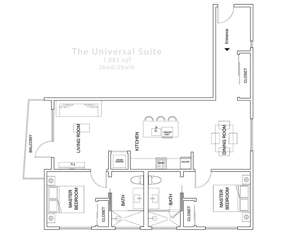 The Universal Suite - Imagen 10 Unidad de apartamento: The Universal Suite # 309Modelo de apartamento: The Universal Suite$3,1002 Dormitorios, 2 Baños, 1083 sq ftDisponible AhoraThe Bronson Suite