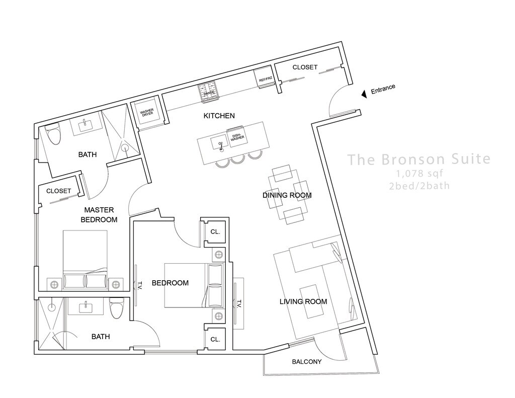 Modelo de apartamento: The Bronson Suite$2,9952 Dormitorios, 2 Baños, 1051-1078 sq ftDisponible January 15, 2026PlanosFotos![]()