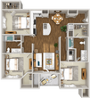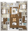 Modelo de apartamento: The Bullock$1,6402 Dormitorios, 2 Baños, 1130 sq ftNo DisponibleThe Bullock - Plano 1 3 Dormitorios