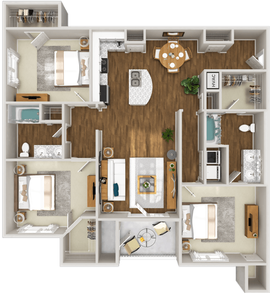 3 Dormitorios, 2 Baños, 1441 pies²Disponible AhoraGalería del Modelo