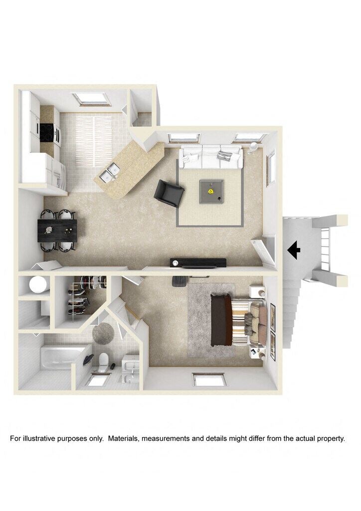 1 Dormitorio, 1 Baño, 678 pies²Disponible January 8, 2026Galería del Modelo
