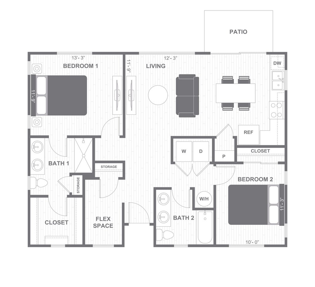 Modelo de apartamento: 2 Bed/2 Bath2 Dormitorios, 2 Baños, 1168 sq ftDisponible Ahora![]()