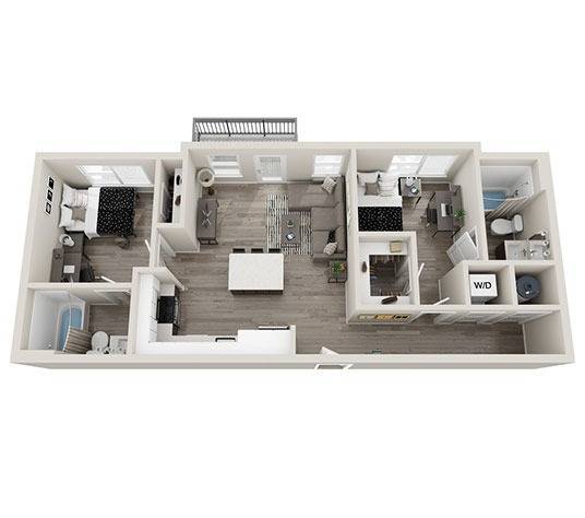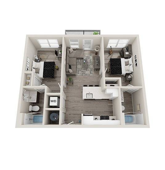 2 Dormitorios, 2 Baños, 815 pies²Disponible August 14, 2026Galería del Modelo