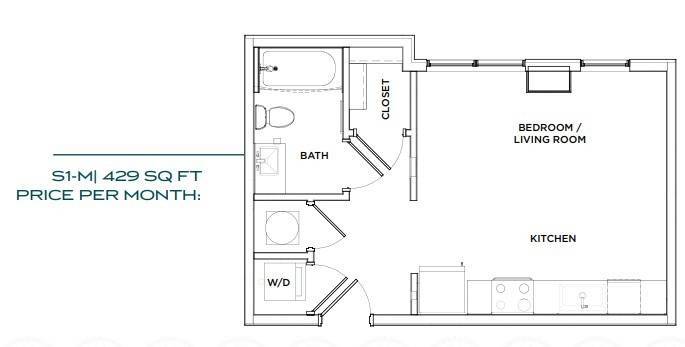 Estudio, 1 Baño, 429 pies²Disponible August 14, 2026Galería del Modelo