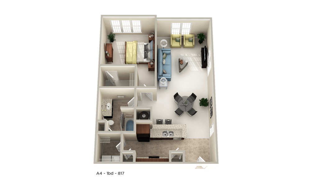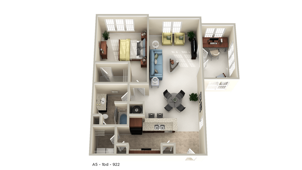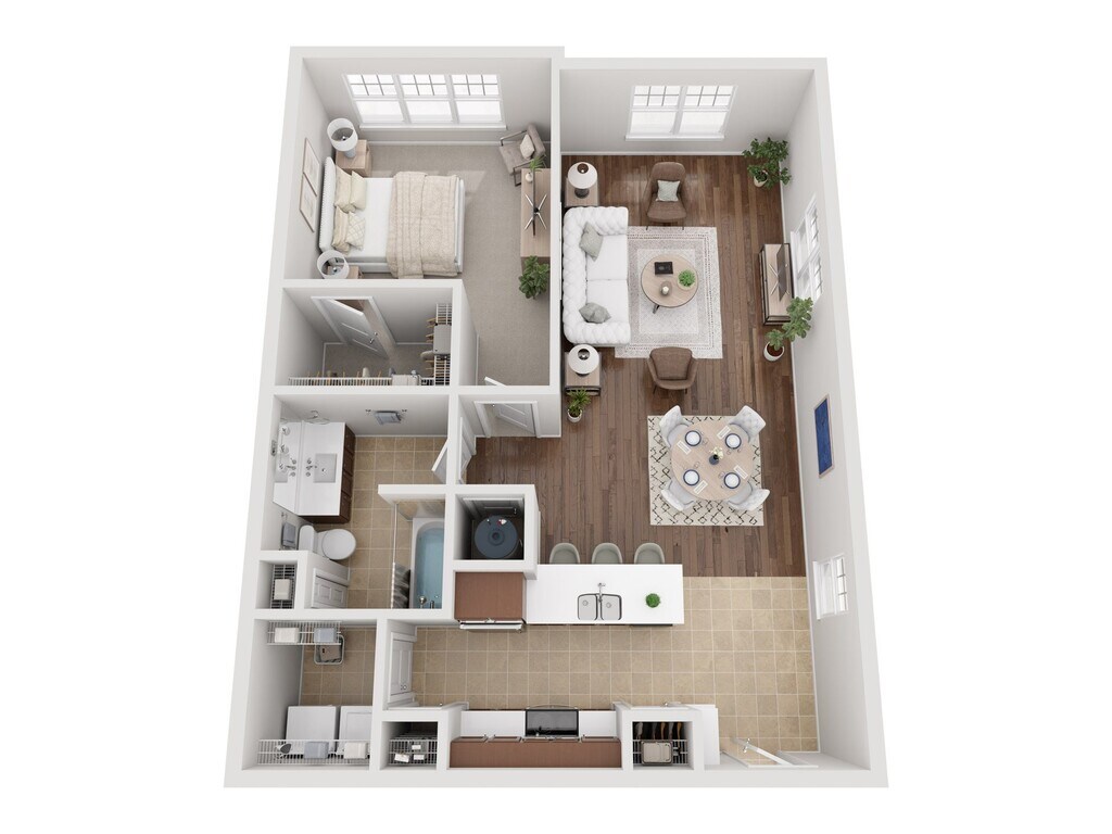 1 Dormitorio, 1 Baño, 765 pies²Disponible AhoraGalería del Modelo