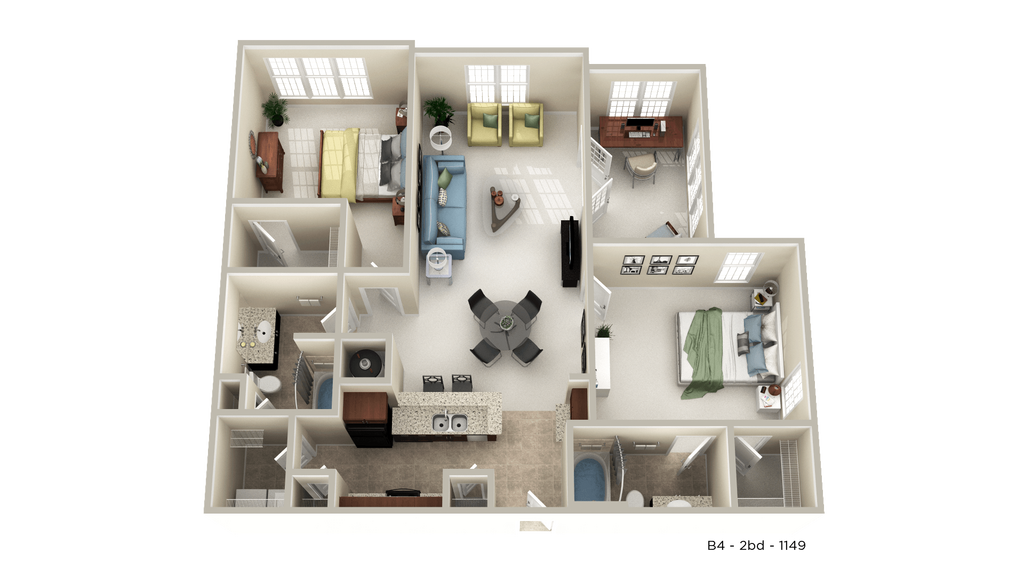 1 Dormitorio, 1 Baño, 716 pies²Disponible AhoraGalería del Modelo