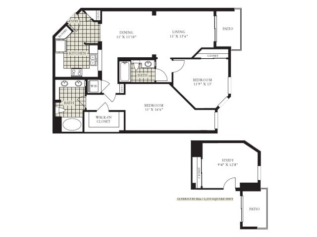 1 Dormitorio, 1 Baño, 941 pies²El más grandeEsta opción tiene las unidades más grandes para este modeloGalería del Modelo