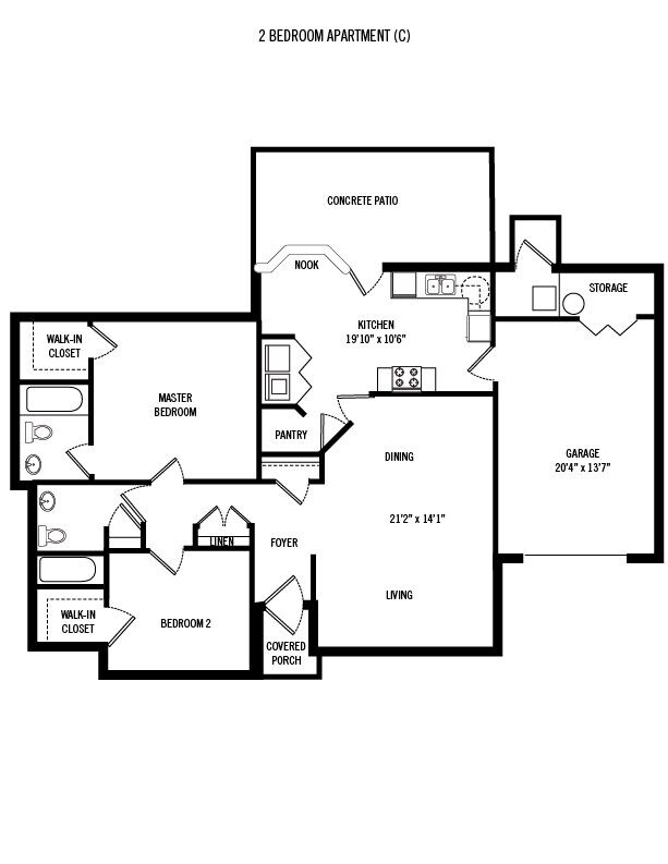 Modelo de apartamento: Two Bedroom2 Dormitorios, 2 Baños, 1476-1512 sq ftNo Disponible![]()