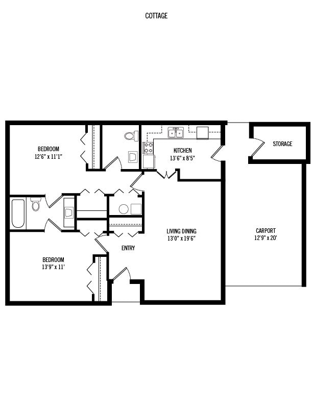 Modelo de apartamento: Cottage2 Dormitorios, 1.5 Baños, 928-1617 sq ftNo Disponible![]()