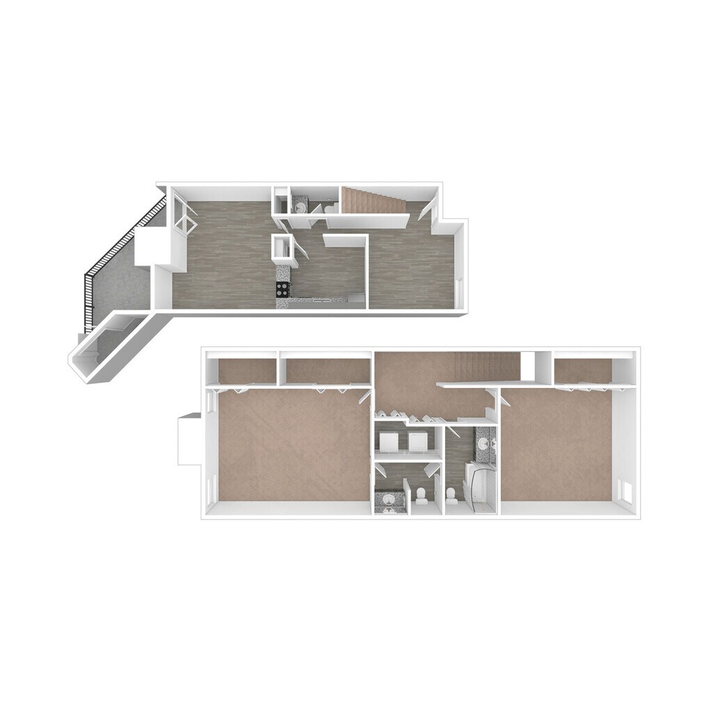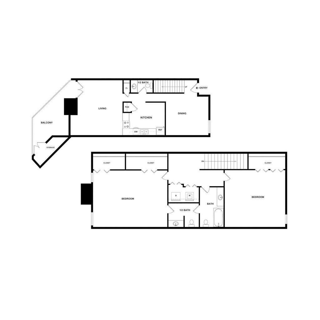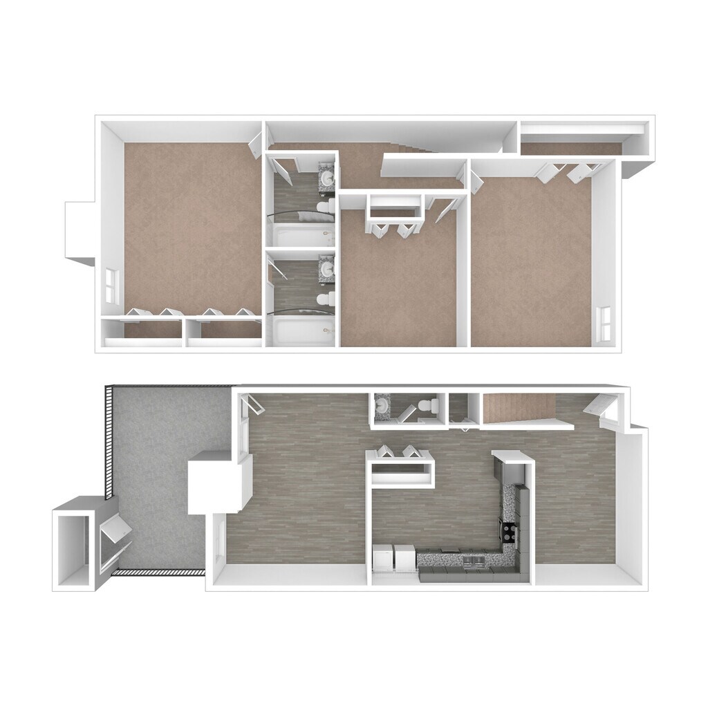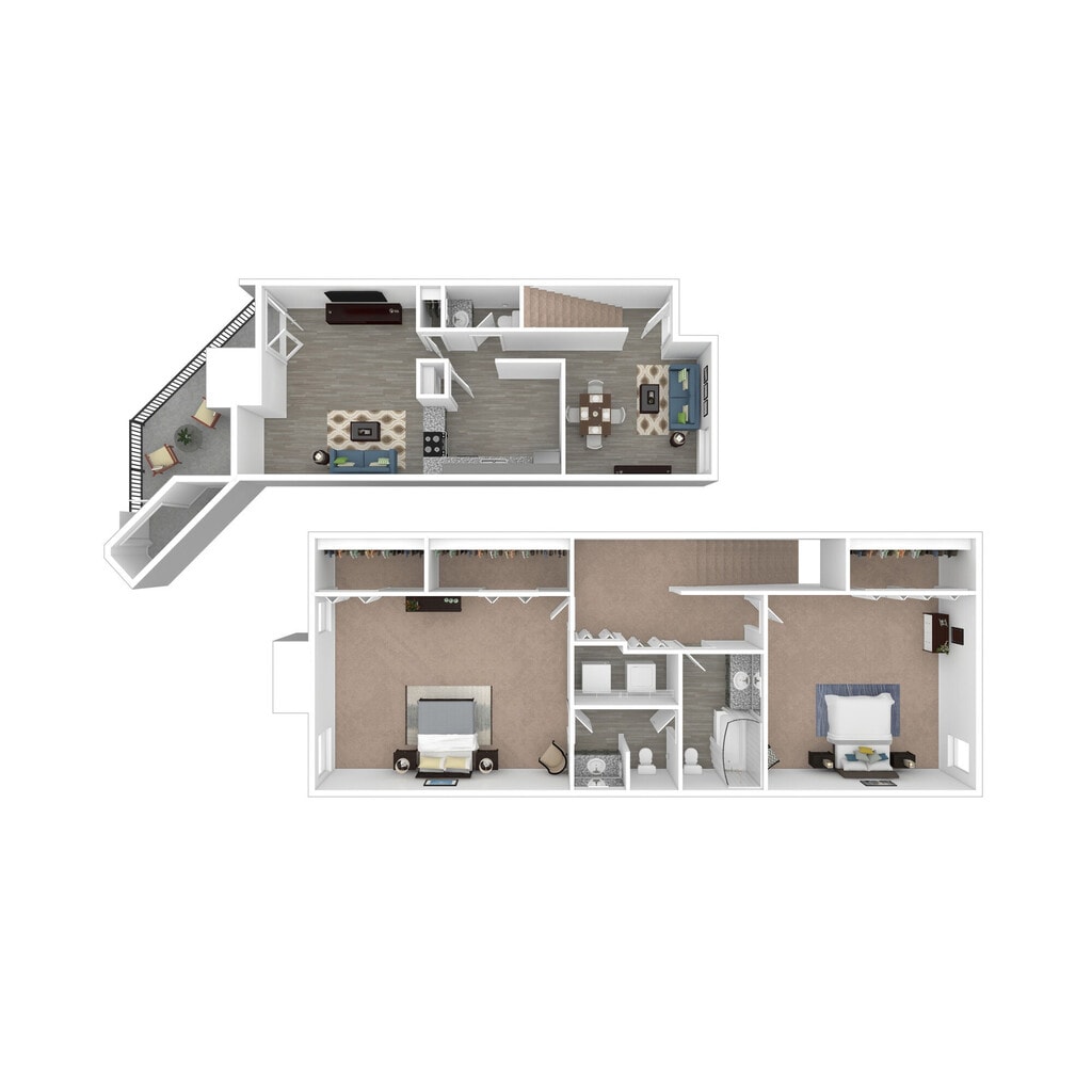 Modelo de apartamento: 2x1.5Desde $1,1992 Dormitorios, 2.5 Baños, 1280 sq ftDisponible Ahora![]()