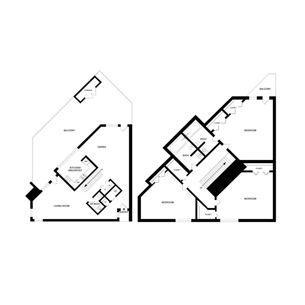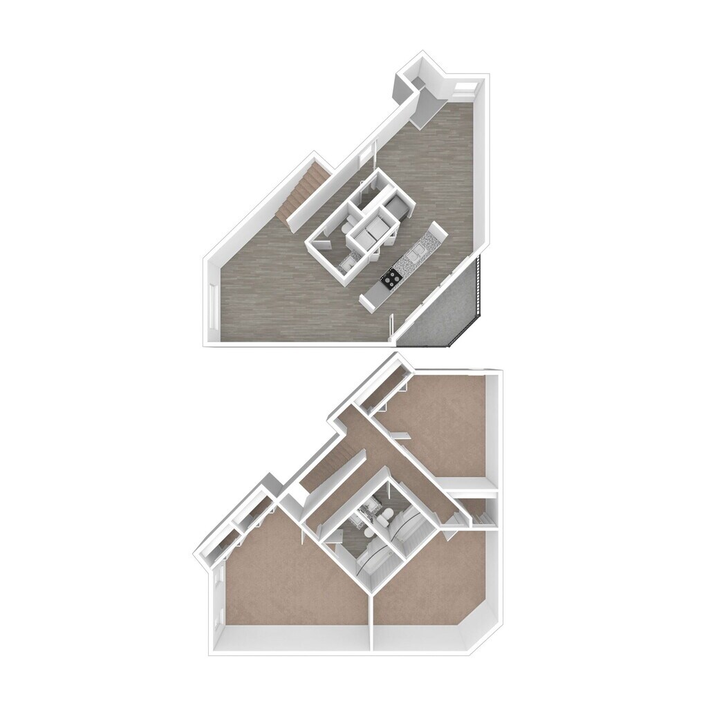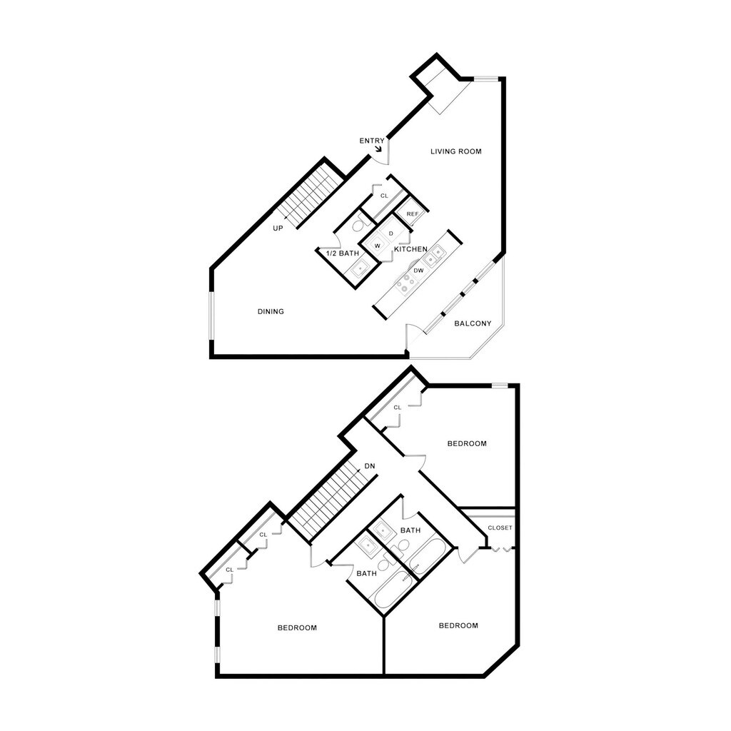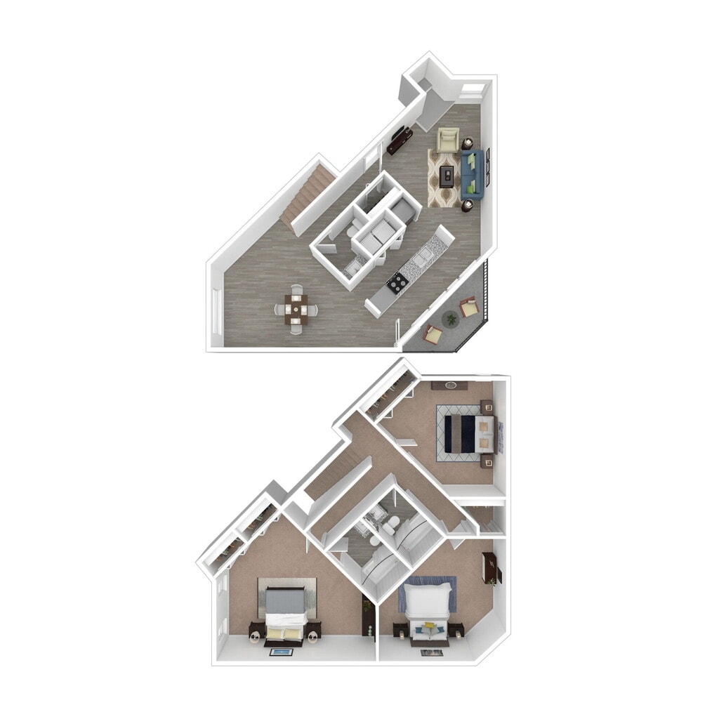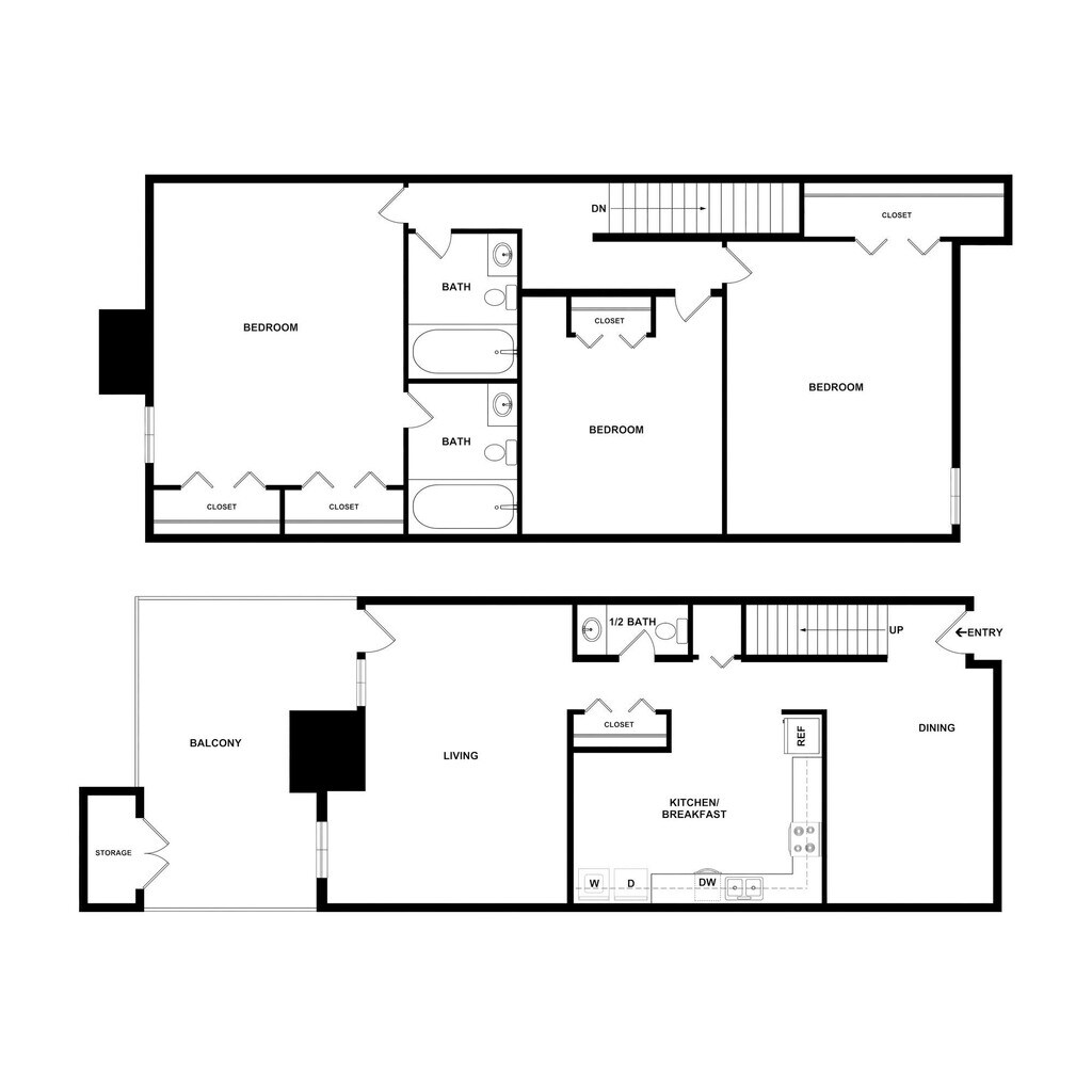 Modelo de apartamento: 2x1.5Desde $1,1992 Dormitorios, 2.5 Baños, 1280 sq ftDisponible Ahora![]()