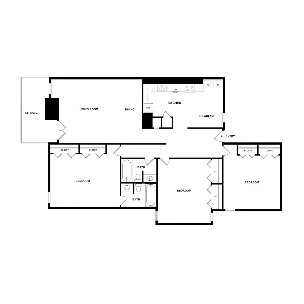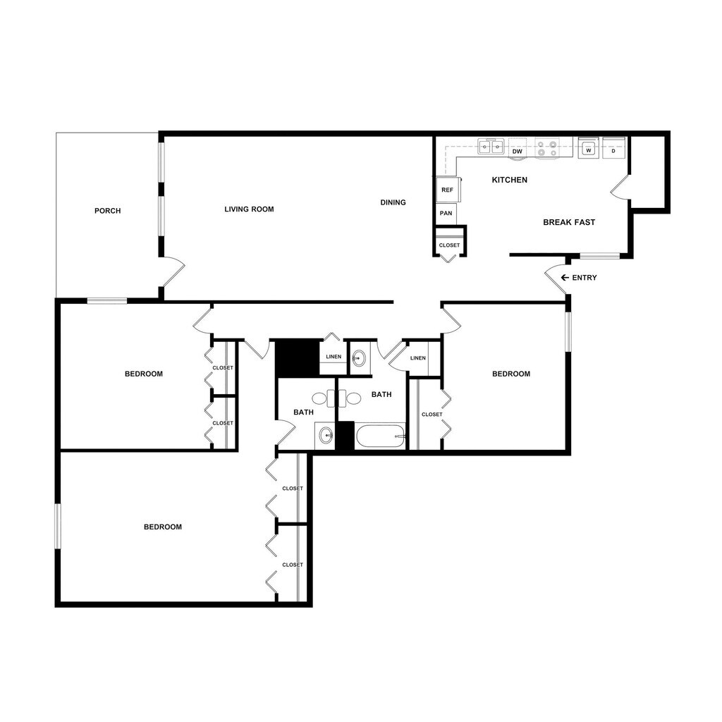 3 Dormitorios, 1.5 Baños, 1280 pies²Disponible AhoraGalería del Modelo