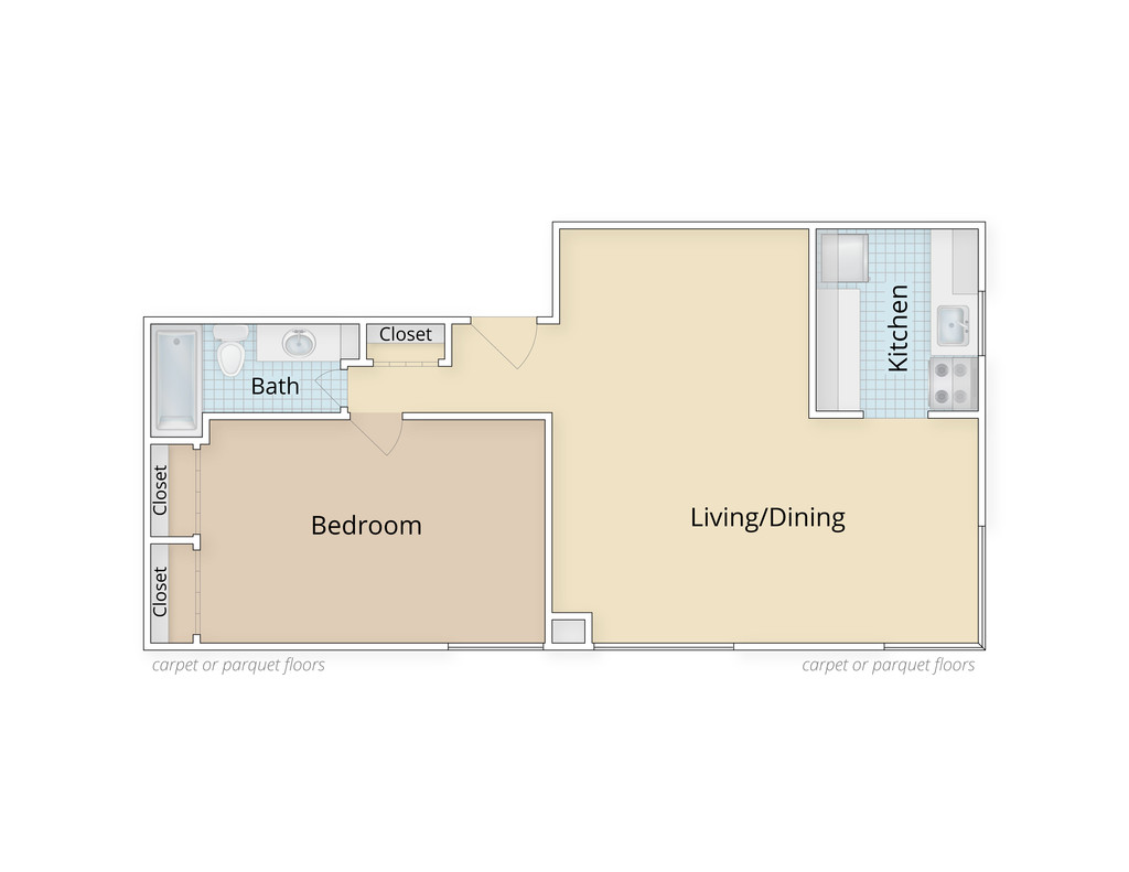 Estudio, 1 Baño, 420 pies²Disponible AhoraGalería del Modelo