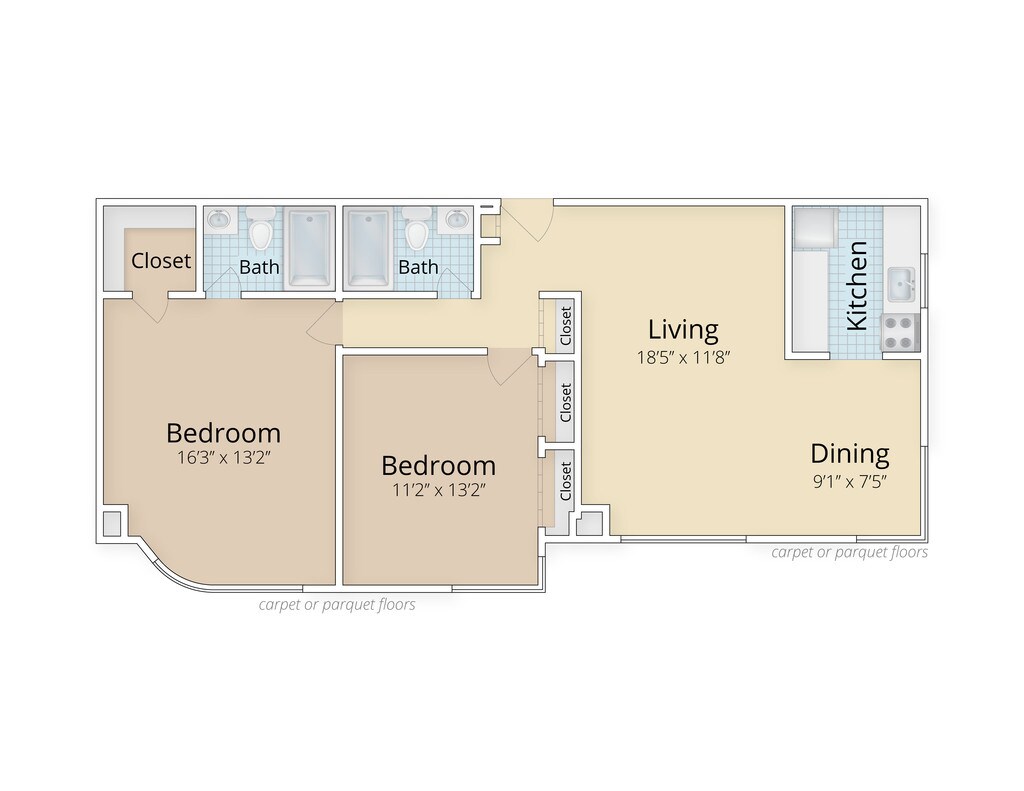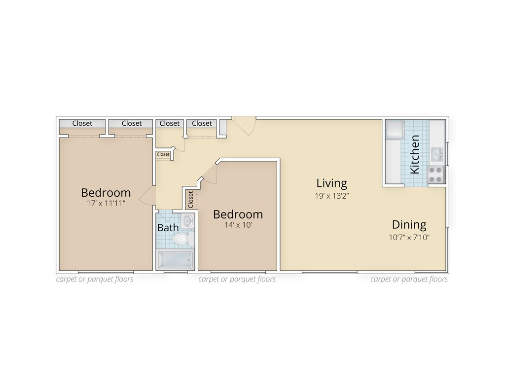 Modelo de apartamento: Two Bedroom2 Dormitorios, 1 Baño, 874-1034 sq ftDisponible Ahora![]()