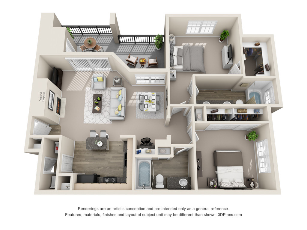 Modelo de apartamento: B2, The Trevino2 Dormitorios, 2 Baños, 1094 sq ftDisponible Ahora![]()