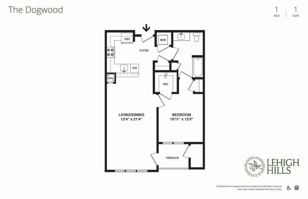 1 Dormitorio, 1 Baño, 791-1013 pies²Disponible AhoraGalería del Modelo