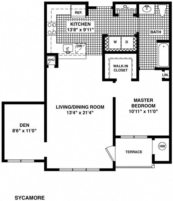Modelo de apartamento: 1BRDesde $1,7081 Dormitorio, 1 Baño, 791-1013 sq ftDisponible Ahora![]()