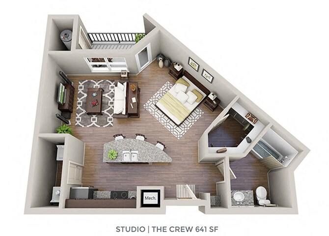 Modelo de apartamento: The Crew ALlame para PreciosEstudio, 1 Baño, 641 sq ftNo DisponibleLos planos de la planta son una interpretación artística. Todas las dimensiones son aproximadas. Los tamaños o el detalle del producto real y sus especificaciones pueden variar. No todas las características están disponibles en todos los hogares para rentar. Los precios y la disponibilidad están sujetos a cambios. El alquiler que se muestra es mensual. Se pueden aplicar ciertos cargos, por ejemplo, entrega de paquetes, recolección de basura, agua, servicios, etc. Depositos varian. Consulta a un representante para conocer detalles.