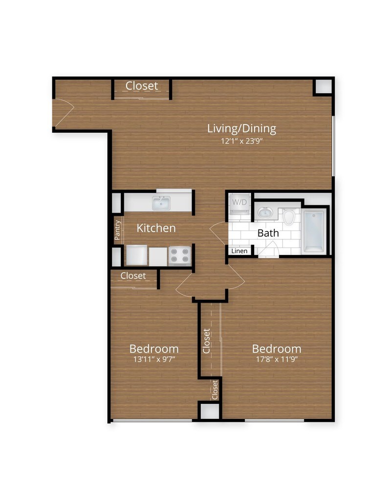 Modelo de apartamento: The Monroe IDesde $2,1251 Dormitorio, 1 Baño, 737 sq ftDisponible Ahora![]()