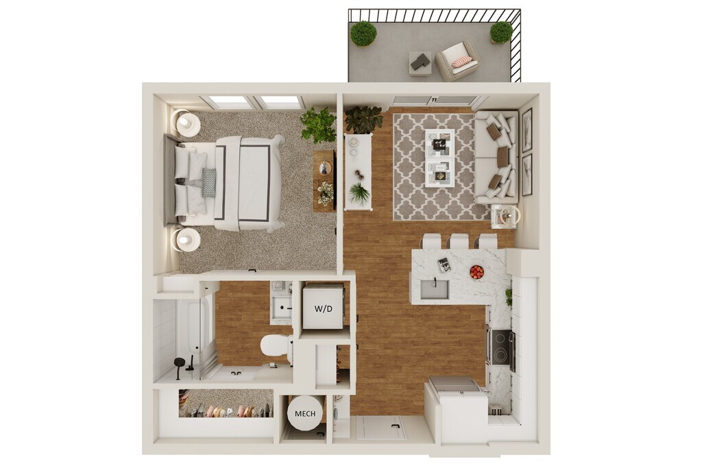 1 Dormitorio, 1 Baño, 613 pies²Disponible AhoraGalería del Modelo