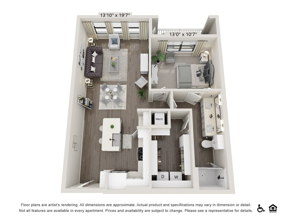 Modelo de apartamento: A2ADesde $1,4091 Dormitorio, 1 Baño, 664 sq ftDisponible AhoraLos planos son representaciones artísticas. Todas las dimensiones son aproximadas. El producto y las especificaciones reales pueden variar en tamaño o detalle. No todas las características están disponibles en cada vivienda en alquiler. Por favor, consulta con un representante para obtener más detalles.