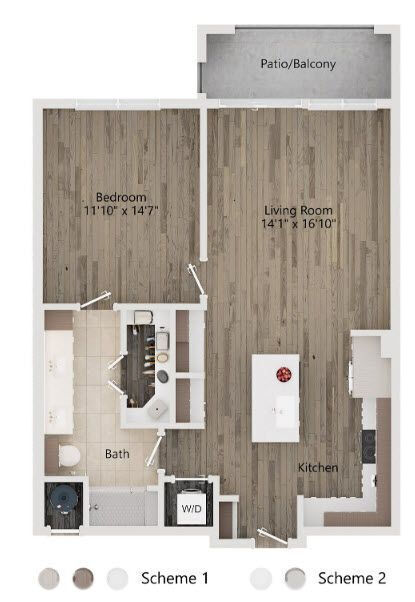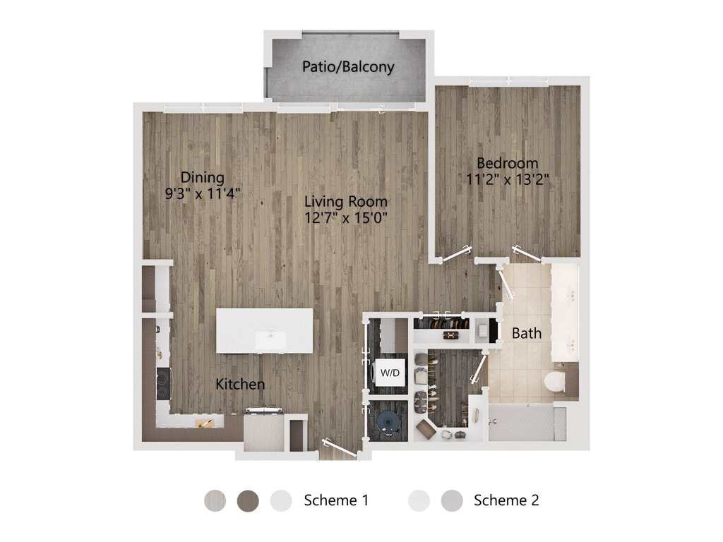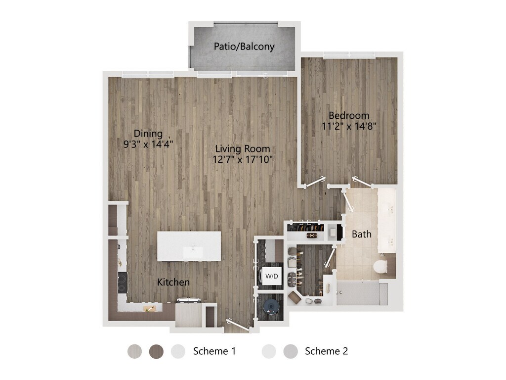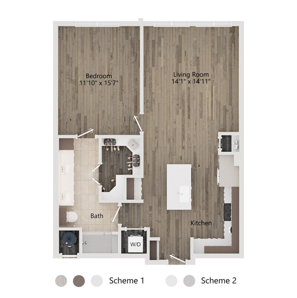 A1b - Plano 1 Unidad de apartamento: 370Modelo de apartamento: A1b$2,0441 Dormitorio, 1 Baño, 724 sq ftDisponible AhoraPlano: A3a