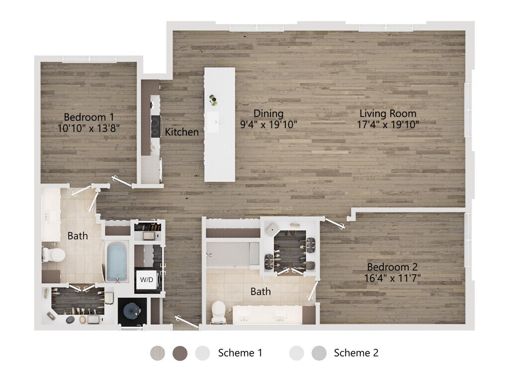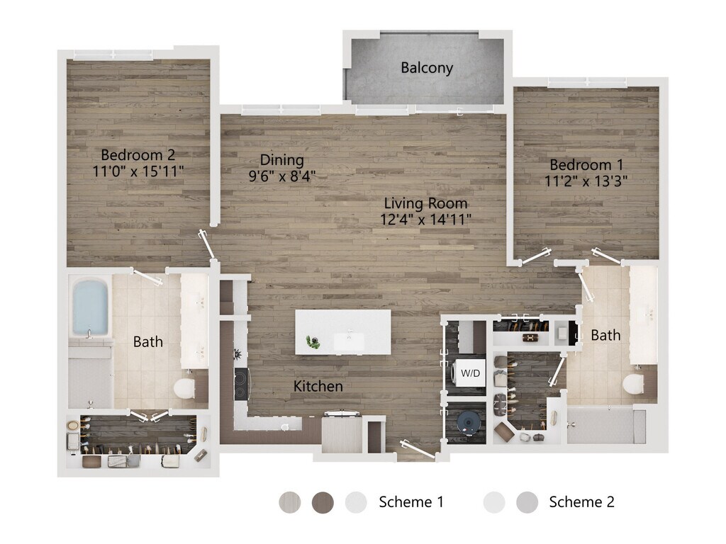 Modelo de apartamento: A2$1,9481 Dormitorio, 1 Baño, 706 sq ftDisponible Ahora![]()
