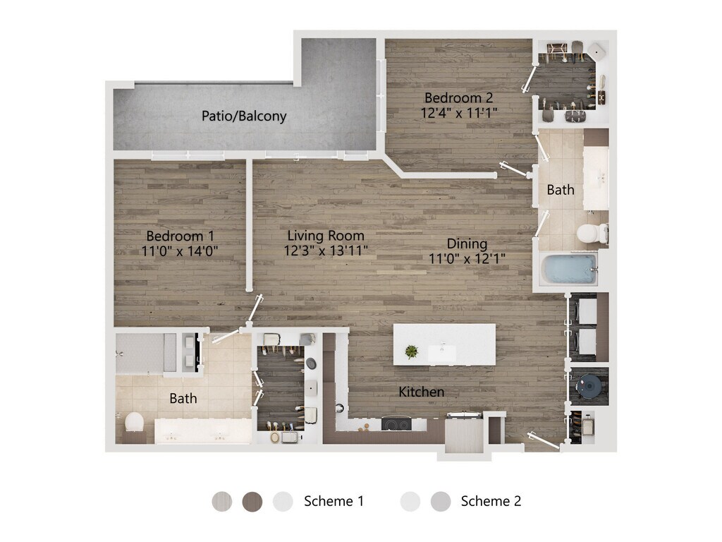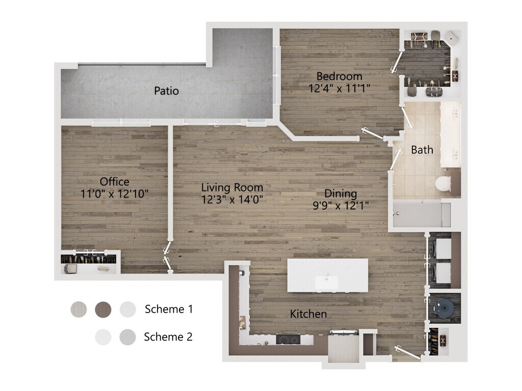 Modelo de apartamento: A3Desde $1,9551 Dormitorio, 1 Baño, 726 sq ftDisponible Ahora![]()