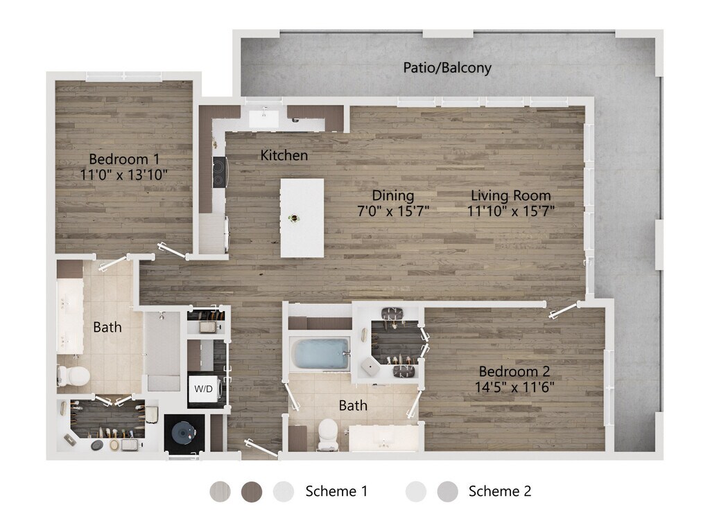 Modelo de apartamento: A1b$2,0441 Dormitorio, 1 Baño, 724 sq ftDisponible Ahora![]()