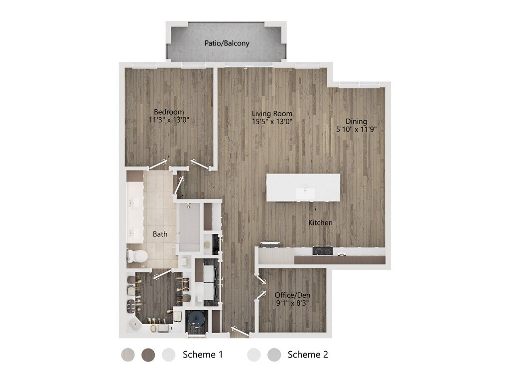 1 Dormitorio, 1 Baño, 690 pies²Disponible AhoraGalería del Modelo