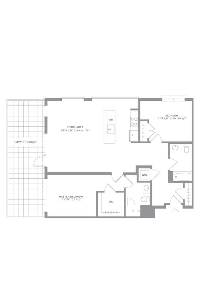 Modelo de apartamento: S2Desde $2,737Estudio, 1 Baño, 602 sq ftNo Disponible![]()