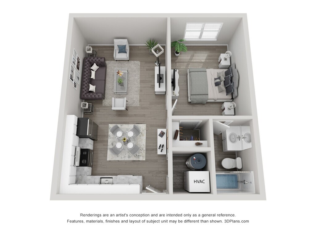 1 Dormitorio, 1 Baño, 620 pies²Disponible AhoraGalería del Modelo