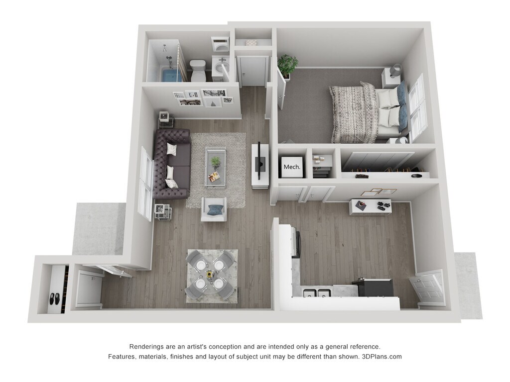 1 Dormitorio, 1 Baño, 800 pies²Disponible AhoraGalería del Modelo