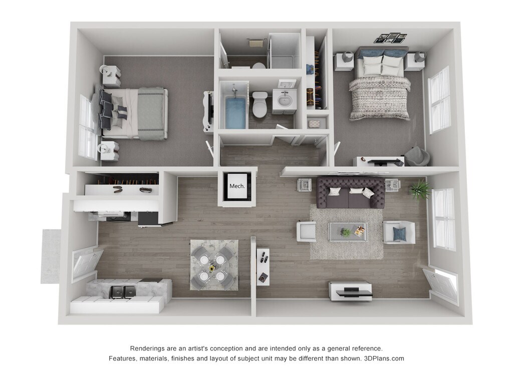 Modelo de apartamento: 2 x 2 Standard - Call For AvailabilityDesde $1,3002 Dormitorios, 2 Baños, 1150 sq ftDisponible Ahora![]()