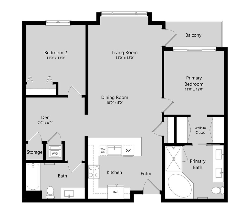 1 Bed 1 Bath Flat + Den B - Plano 1 1 Bed 1 Bath Flat + Den D