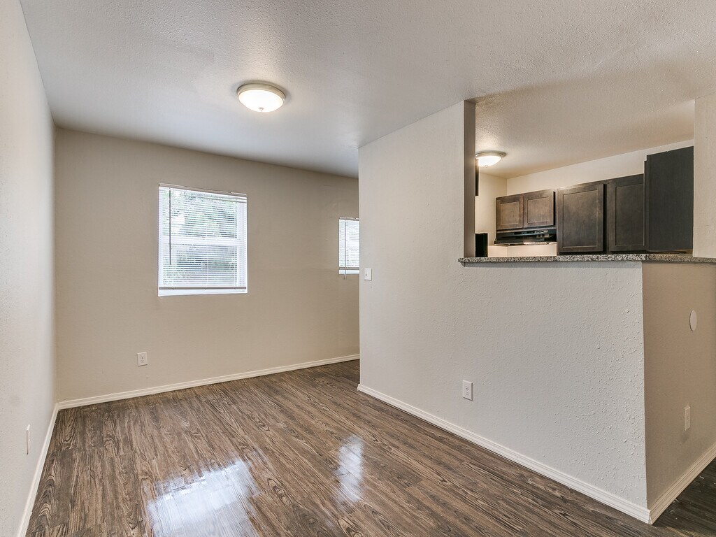 Completamente nuevo apartamento! Todo en este apartamento es completamente nuevo. Pisos de madera en toda la propiedad, cocina de concepto abierto con encimeras de granito y un área de estar, nuevos electrodomésticos de marca (que incluyen lavaplatos, horno de microondas, triturador de basura, estufa eléctrica y refrigerador, así como un nuevo LAVADORA Y SECADORA EN EL APARTAMENTO, para tu comodidad. Te encantarán las modernas colores de pintura y las grandes ventanas nuevas en todo. Tú será la primera persona nunca en este apartamento! Convenientemente ubicado cerca de la I-35 en un complejo tranquilo. Distrito escolar de Moore. Se admiten mascotas. No configurar para la Sección 8.