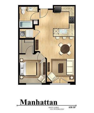Modelo de apartamento: Manhattan1 Dormitorio, 1 Baño, 627-638 sq ftDisponible Ahora![]()